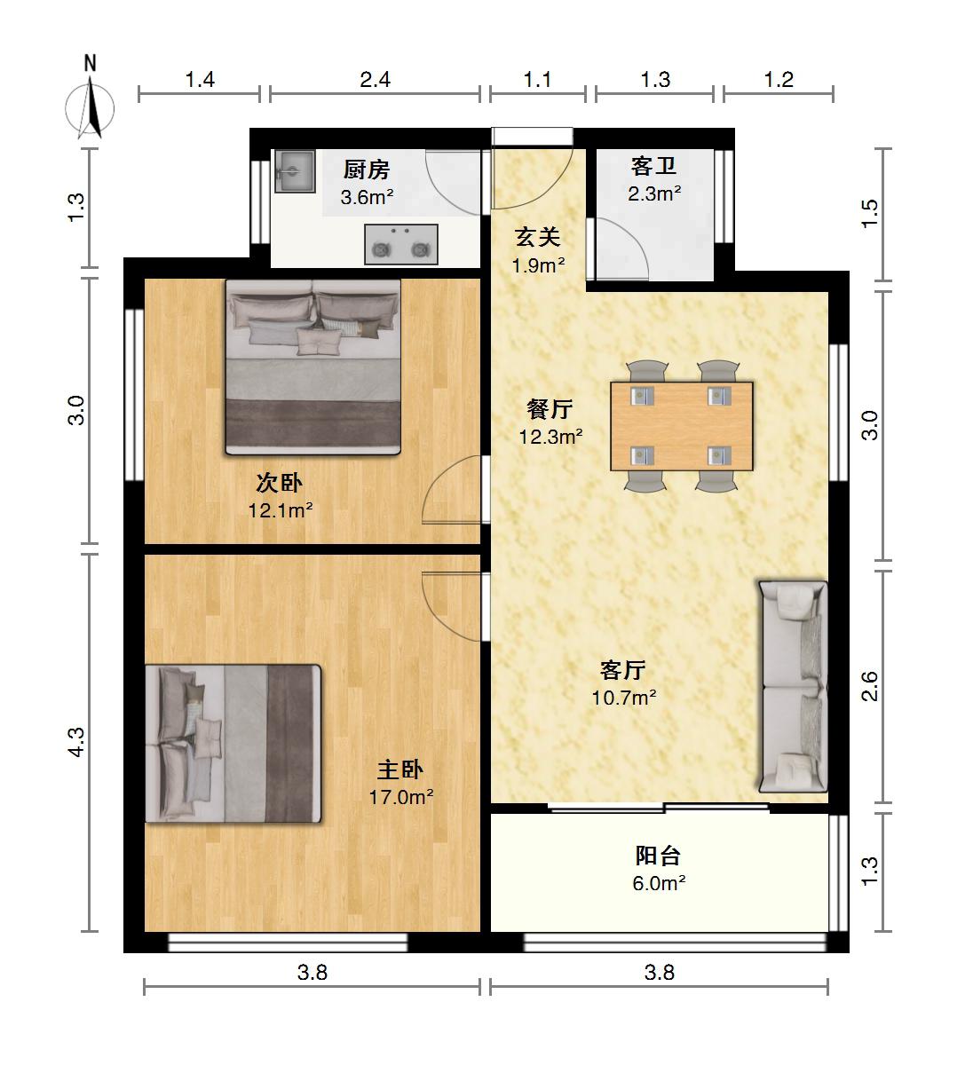 1、正规2室2厅1卫2阳台。.日照充足.