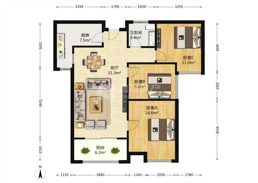 3室2厅1卫