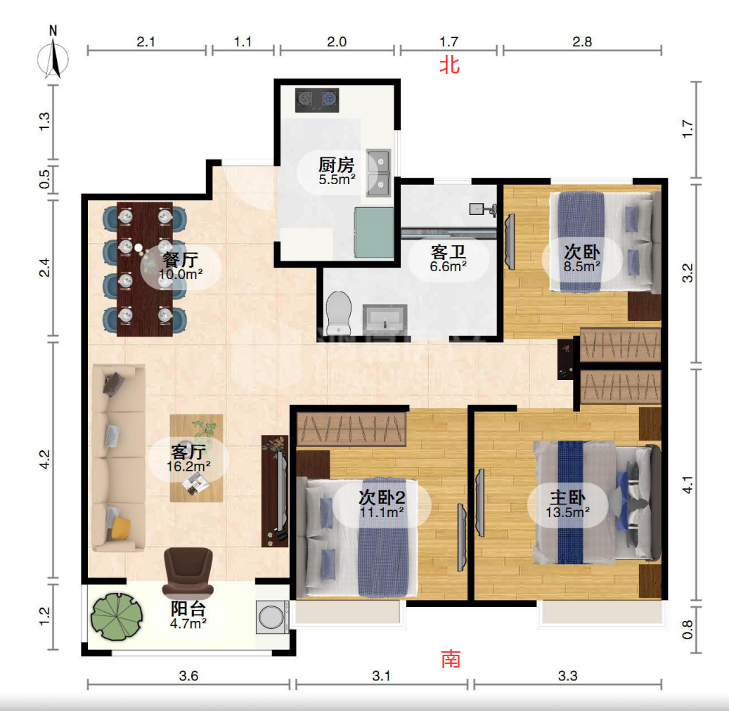 3室2厅1卫