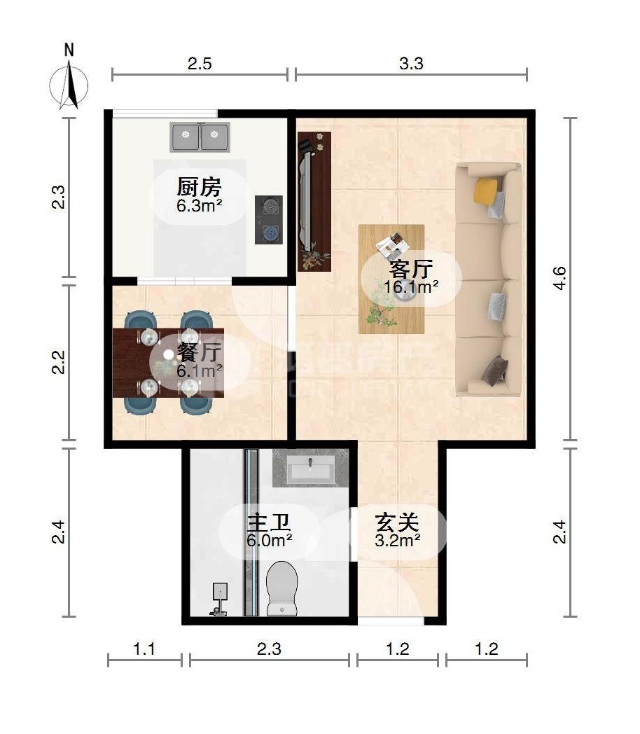 • 房屋户型: 1室1厅1卫