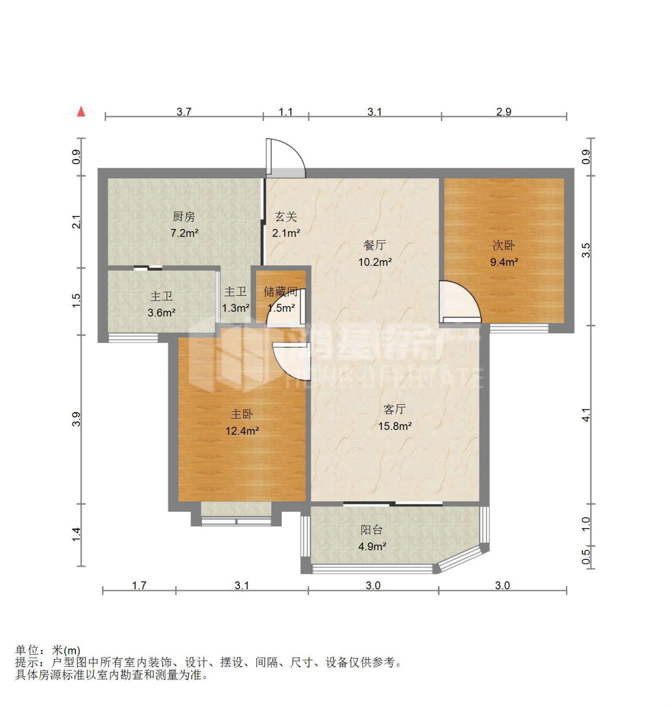 • 房屋面积: 92.7m²