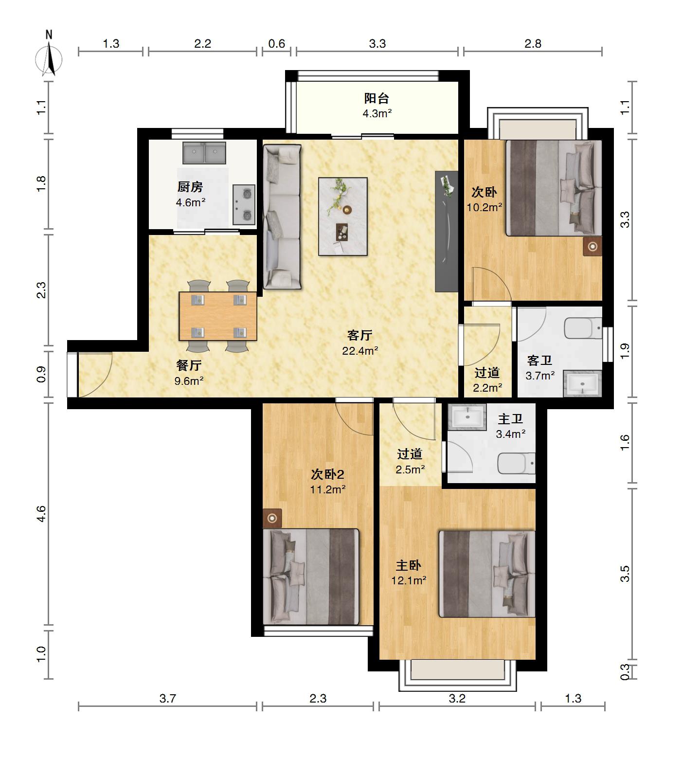 精致3室2厅2卫1阳台,小户型,大生活
