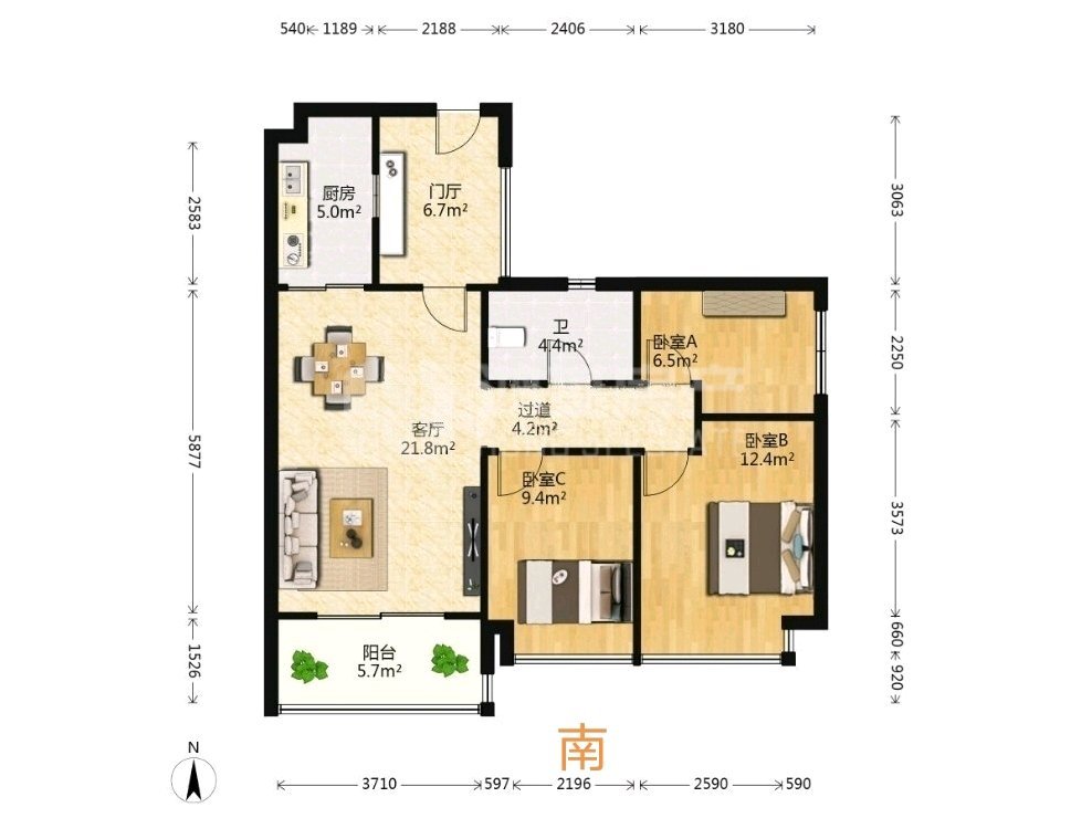 • 房屋户型: 3室2厅1卫