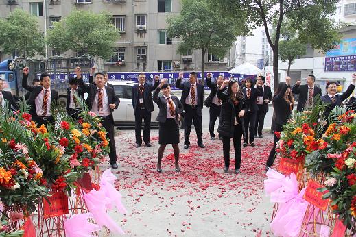 上午9点28分,门店门口预示着大吉大利的“8”字形鞭炮被点燃,开业仪式也正式开始!公司所有的伙伴们整齐的在门口排开,一起跳公司的司舞,一起宣誓,气势激昂,引来了很多路人的驻足围观,也让他们更加了解鸿基和鸿基文化。