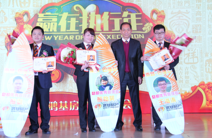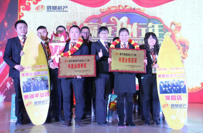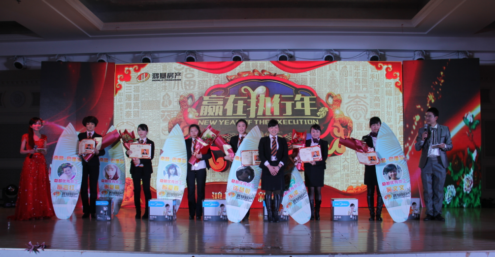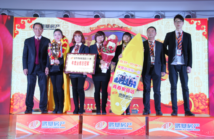 本次年会盛典除了精彩的歌舞表演外,还有另外一个重要环节,就是表彰颁奖环节。在过去的2014年,鸿基的发展离不开每一位伙伴的辛勤付出,为了感谢这些优秀的伙伴们,公司对总部优秀员工、优秀管理人员,以及门店优秀置业顾问,业绩排名前二十的门店和置业顾问等都进行了表彰和奖励。正是因为有这些优秀的伙伴和门店,才会成就鸿基的今天,所以,也理应获得我们的鲜花和掌声!