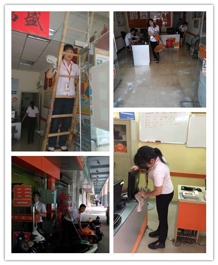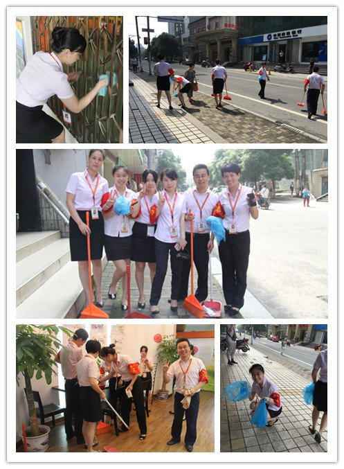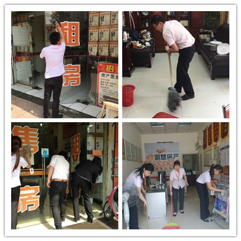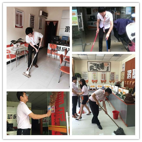 上午九点钟,鸿基房产总部参加活动的小伙伴们便开始分发劳动工具并且划分打扫区域了。大家不仅把公司所在的办公大楼上下七层都打扫了一遍,就连公司附近的马路上,大家也认真打扫。与此同时,门店的伙伴也没有闲着。一百多家鸿基门店的伙伴不仅把店内打扫的一尘不染,店门口的马路和附近的公交车站也打扫的干干净净。
