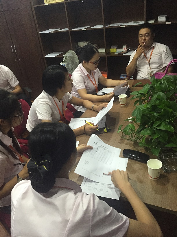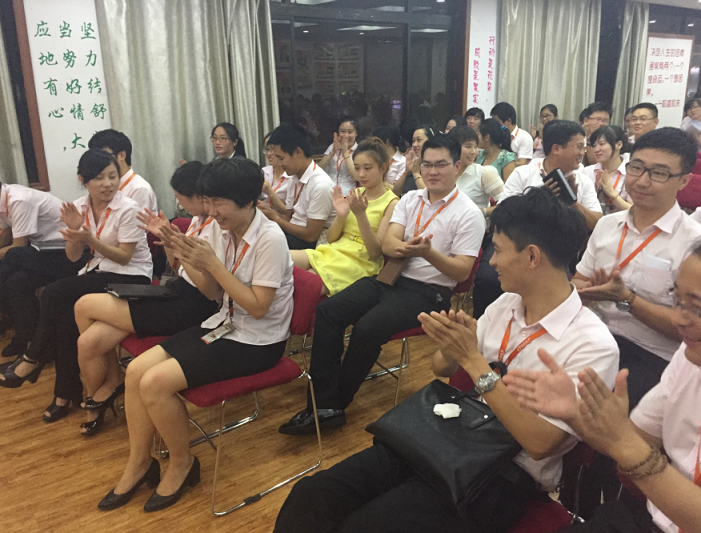7月17号晚上六点半,鸿基房产总部五楼召开了4——6月份总部价值观研讨大会,公司总部所有伙伴和高层领导均参加了本次研讨会。本次价值观研讨是全年研讨的第二个阶段,研讨的主题是“团结进取”。九个小组围绕着团结进取进行自我剖析和讨论打分,最终,每个小组各派出一名代表发言,讲述自己小组关于团结进取的典型事件,一个个发生在我们身边鲜活的例子,让台下的很多伙伴都感触颇深。