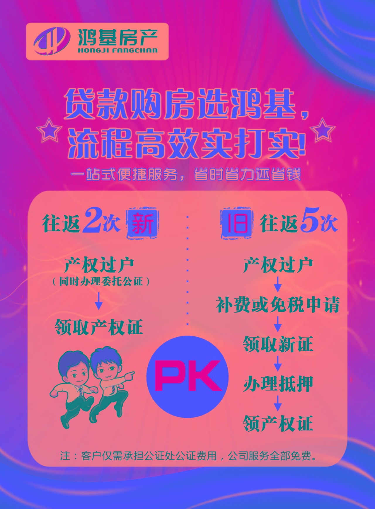 过去的购房置业,客户总免不了来回奔波,而此次活动,鸿基将为您做到一站式服务,让您轻松便捷置业,一站到位。凡活动期间在鸿基办理贷款购房业务的客户,交易中心提供国庆“一站式服务”,原本需要往返五次的繁琐流程,现在只需两次轻松解决,公司服务费全免,仅需承担公证处公证费用。