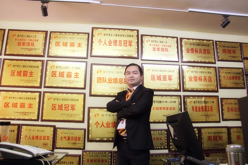 (店长黄国庆)想要对你们说。。。。 2015年,大家都为了达成目标付出了很多,作为店长也感到满意与欣慰。感谢大家一起努力走过这一年的酸甜苦辣,希望2016年,大家能再接再厉,业绩再上一个台阶。 店长的心声 感谢鸿基给予平台与支持,我们仍在不断努力,向第一发起挑战。这个月的目标已经达成,但是我们还有更远更高的目标在等待。最后,还有一点小小的愿望,希望总部能够多多关怀门店,让新老员工都能够更好地融入鸿基大家庭。 走进贤士二路店,店长黄国庆和所有员工一样在自己的办公桌前仔细地查看房源,鼠标不断地移动敲击。 对于小编的采访,黄店长说的最多的还是业绩上的雄心壮志。超额完成任务不算什么,他的目标不在完成任务,而在于超越自我,力争第一。 站在挂满荣誉奖牌的墙前拍照,黄店长显得沉稳而自信。更多?更好?他心中自有一本账簿,计划全在其中。 生命中不能缺少目标 可以没有车没有楼 然而没有目标 你就连有车有楼的可能性也没有 像贤士二路店一样 永不停息 追求更高的目标 相信不断的追求才能成就奇迹 奔跑吧,伙伴们 只有在人生道路上充满激情 才能迎来胜利 奔跑吧,贤二 相信成功不负你们的努力
