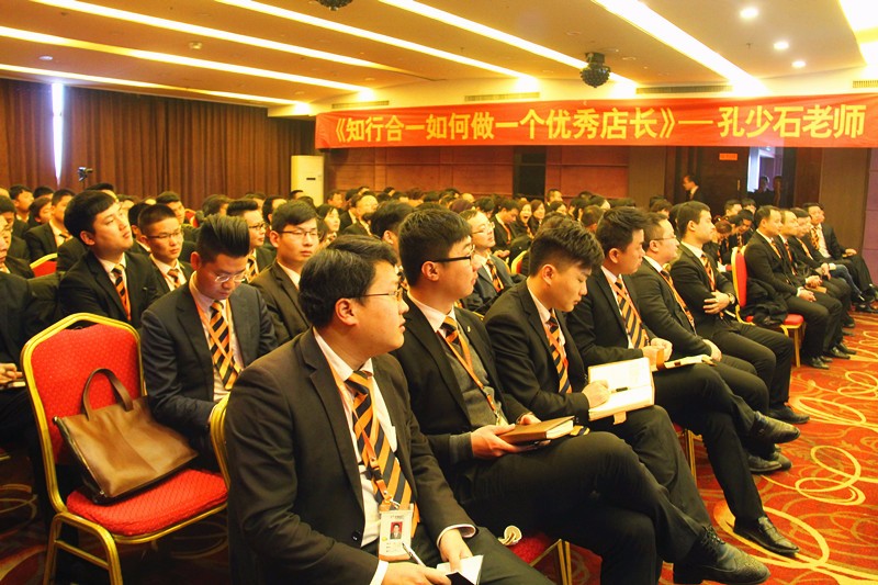 2月26日鸿基店长培训会,孔少石老师为店长们带来了一堂以《知行合一,如何做优秀店长》为主题的讲课。课上孔少石老师帮助店长们分析自身存在的问题,与大家一同探讨影响业绩的几大原因并寻找解决方法。