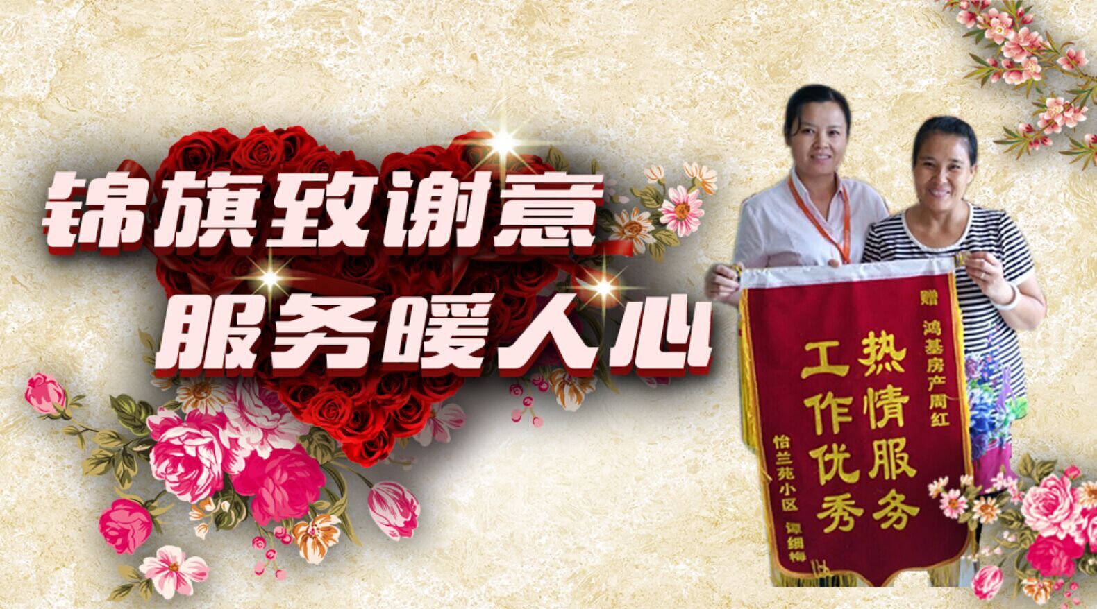服务从心开始,满意由心而来。鸿基的服务理念便是如此,让客户满意让客户放心。今天,南大高校店的周红接到了来自客户的一面锦旗,这是对她工作的肯定,也是对她的服务对鸿基的服务理念的一种肯定。