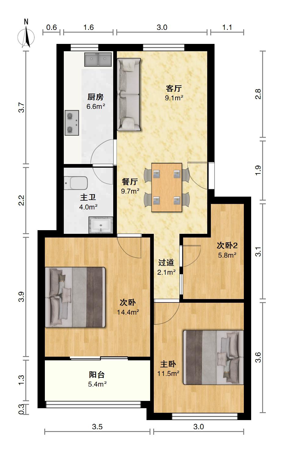 3室2厅1卫