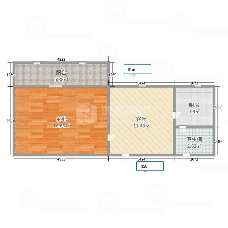 首页 > 二手房 > 1室1厅1卫1阳台39.2㎡,阔绰客厅,超大阳台