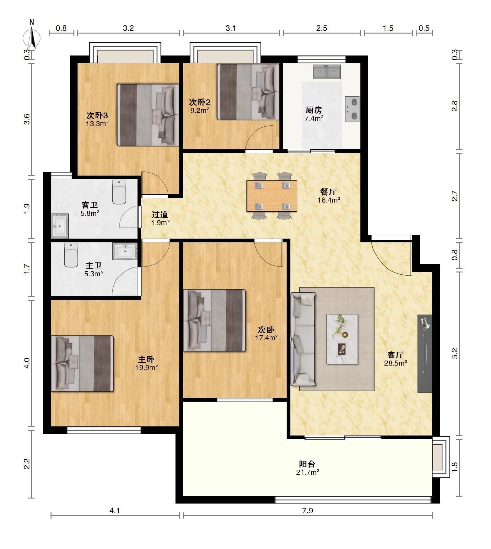 南北通透的四房两厅两卫